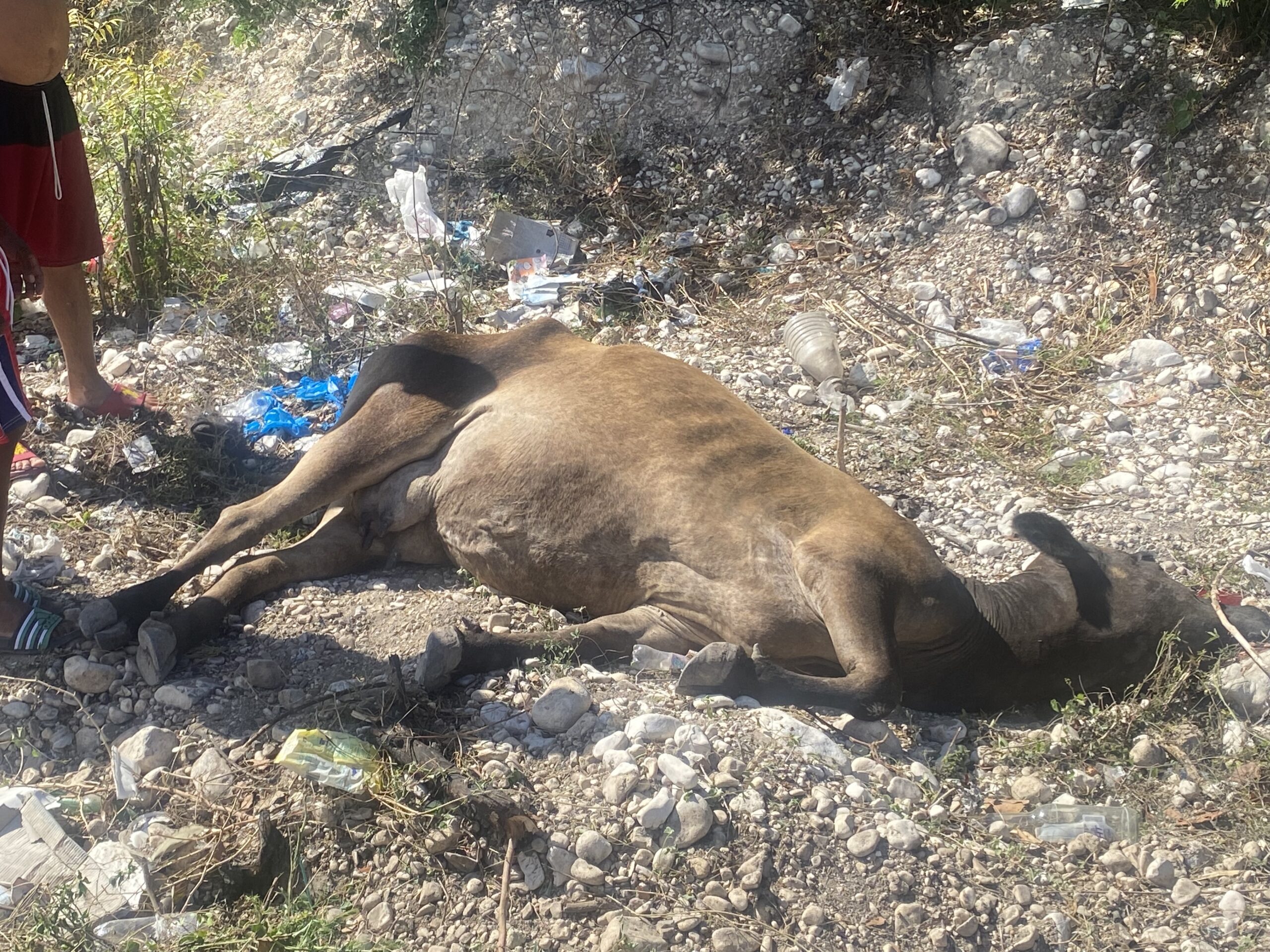 La vaca quedó tirada a un lado de la vía, al lugar se presentaron miembros de la Policia y agentes de tránsito de la Digesett.